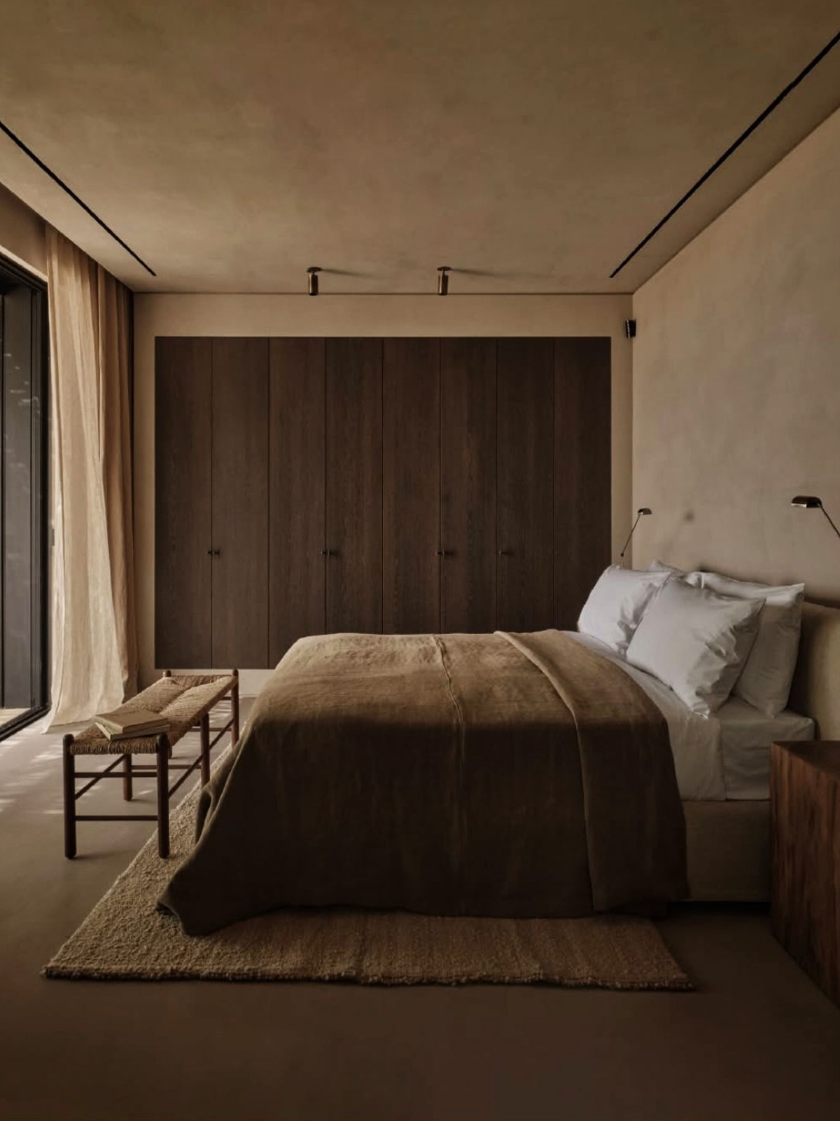 Хранение скрытое: шкафы и комоды должны сливаться со стенами, не перегружая пространство.