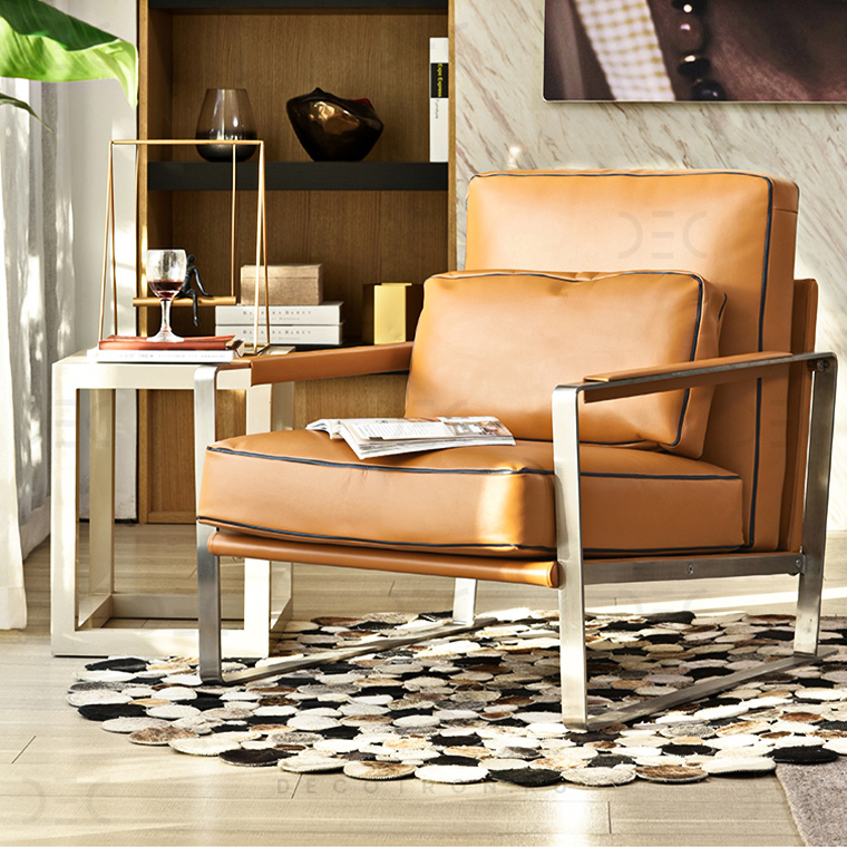 Дизайнерское кожаное кресло на тонком стальном каркасе в деловом стиле