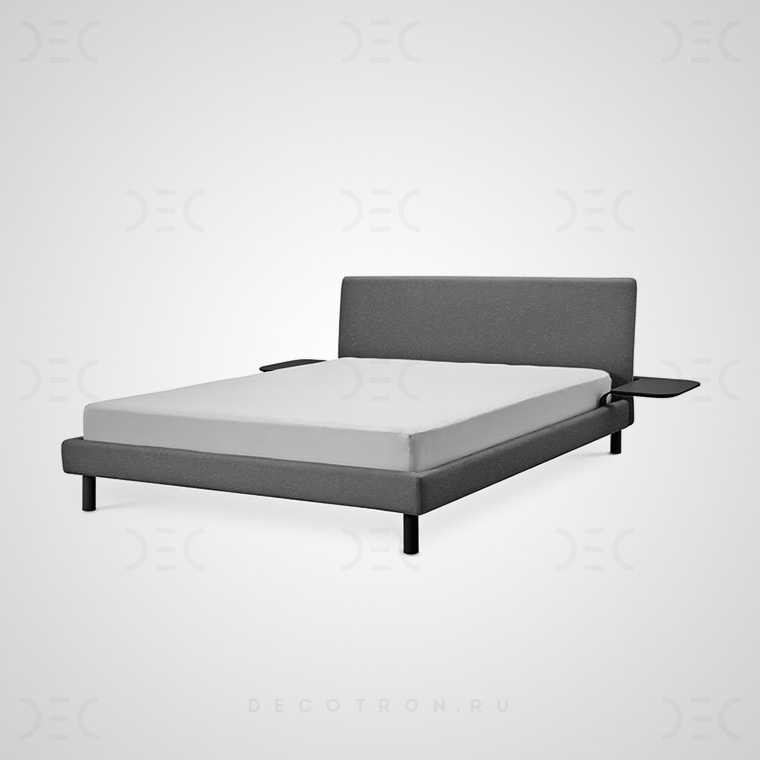Дизайнерская кровать с мягким изголовьем и прикроватными столиками CLOUDO Графит. Размер M+Столики