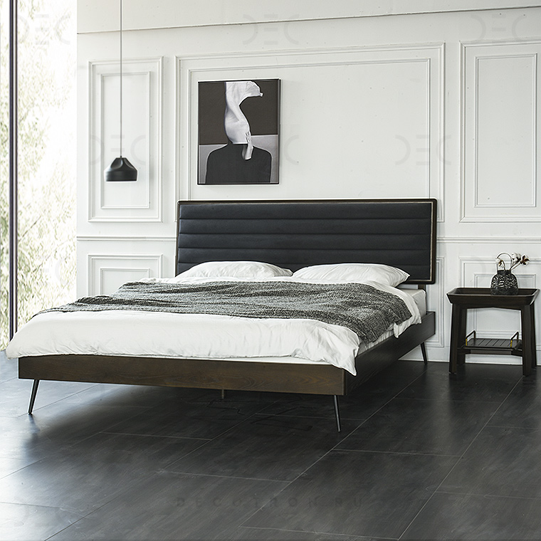 Дизайнерская кровать из массива дерева с мягким изголовьем TORRES Чернильный