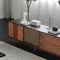 Дизайнерская TV-тумба в стиле ретро с перфорированной отделкой в цвете латунь