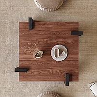 Дизайнерский журнальный стол из натурального дерева с квадратной столешницей и массивными ножками