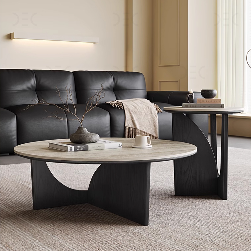 Дизайнерские столики с круглой столешницей из натурального травертина