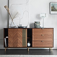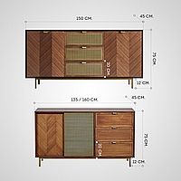 Дизайнерский сервант в стиле ретро с перфорированной стальной отделкой фасада в цвете латунь