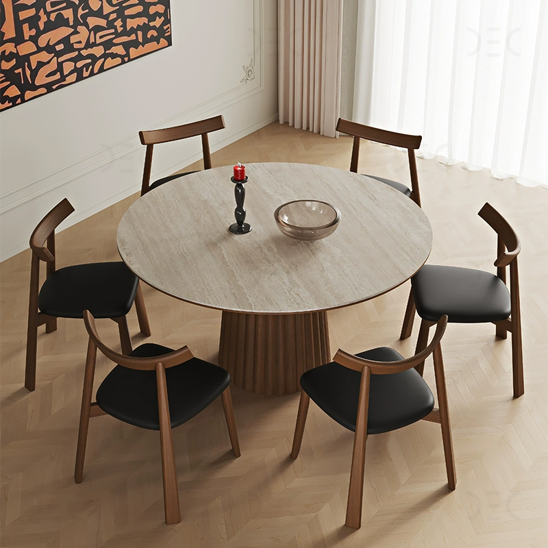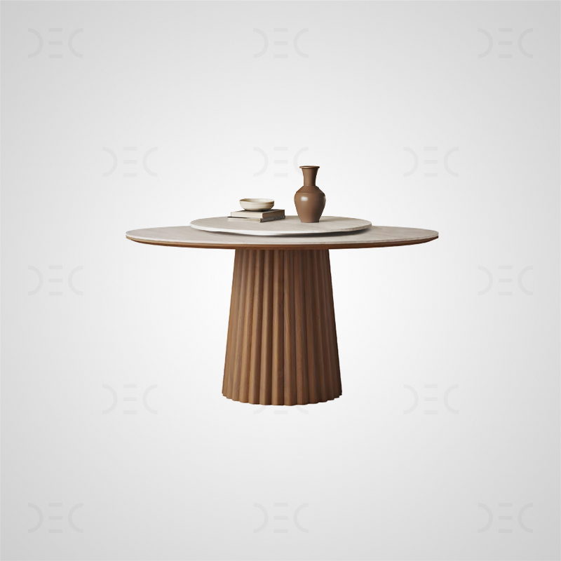 Обеденный круглый стол с каменной столешницей и конусовидной рифленой ножкой