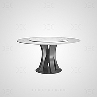 Круглый стол с глянцевой каменной столешницей в цвете Каррара Белый и матовым фигурным подстольем