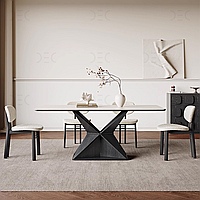 Дизайнерский обеденный стол COMRET DARK с оригинальным подстольем из массива дерева.