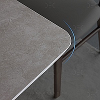 Дизайнерский обеденный стол ENNIO DARK WOOD+AMBRE с массивными деревянными ножками и каменной столешницей