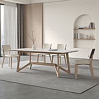 Дизайнерский каменный стол с кремовой столешницей и геометричным подстольем из массива дерева