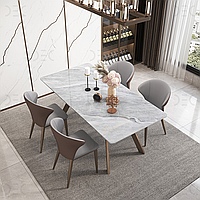 Обеденный стол MATTEO GOLD+GLOSS GREY с глянцевой столешницей из искусственного камня.