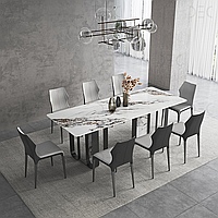 Обеденный стол c фигурным каркасом и глянцевой каменной отделкой в цвете Амаретто Белый