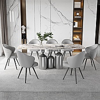 Дизайнерский каменный стол с фигурным стальным каркасом в цвете Матовое серебро