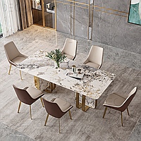 Обеденный стол c комбинированным фигурным каркасом и глянцевой каменной отделкой
