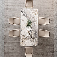 Элегантный обеденный стол TURIN GOLD+GLOSS PANDORA на стальном каркасе с отделкой из искусственного камня с мраморной фактурой.